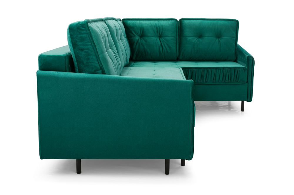Na zdjęciach i nagraniu z produkcji spokrewniony narożnik AVATAR w tkaninie montreal 37 – butelkowa zieleń