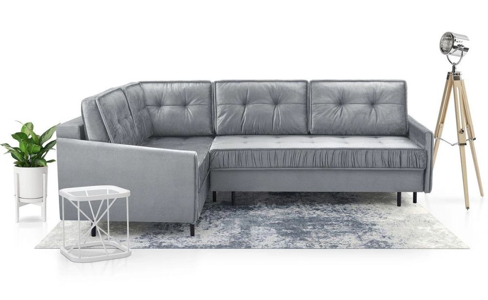 Srebrny narożnik pikowany szary to bezpieczny wybór – szary kolor pasuje do większości barw, szary kolor możemy łączyć z szarościami, czernią, bielą, odcieniami niebieskiego, granatu, pasteli. Narożnik pikowany szary w tkaninie plamoodpornej pomoże nam zaaranżować salon w stylu glamour. Srebrny narożnik z pikowanym siedziskiem – narożnik w stylu glamour z funkcją spania, stylowy narożnik do salonu i wygodny narożnik do codziennie spania. Narożnik ze sprężynami – komfort i wysoka trwałość na wiele lat.