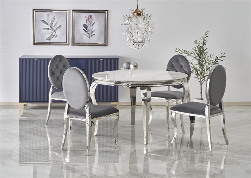 Srebrny stół okrągły z marmurowym blatem 120 cm REGINALD