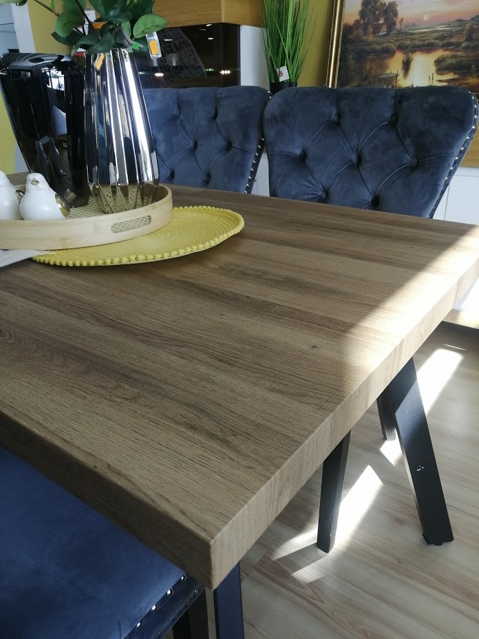 Prezentowany duży stół loftowy rozkładany 180 orzech miodowy to propozycja przede wszystkim do salonu, bądź stół do dużej jadalni, której pomieści się tak duży rozkładany stół. Stoły z czarnymi nogami odnajdują się nie tylko w salonie loft, ale to świetny pomysł na eklektyczne wnętrze z naturalnym akcentem. A co powiecie Państwo na salon w stylu ? Przy takiej aranżacji warto dobrać krzesła o chłodnej, lub naturalnej barwie – czarne krzesła do stołu loft, lub krzesła czarne industrialne. Aranżując natomiast bardziej przytulne wnętrze wybierajmy jasne krzesła do salonu, bądź krzesła w intensywnych kolorach jak granatowe krzesła do stołu, bądź tak modne w ostatnim czasie krzesła musztardowe w tkaninie welurowej.