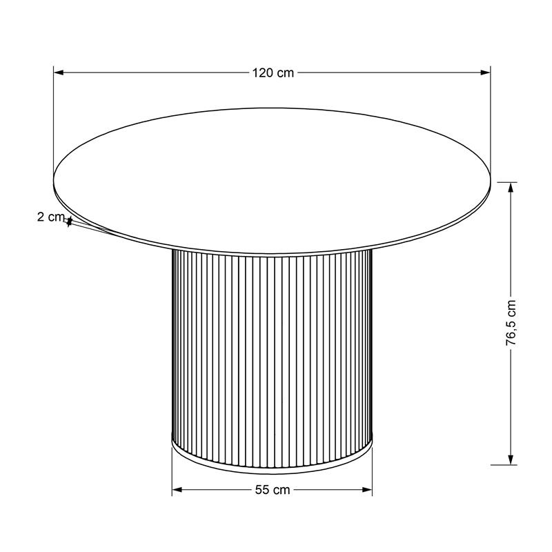 Przestrzeń na spotkania: Dzięki średnicy 120 cm, głębokości 120 cm i wysokości 76 cm, ten stół zapewni odpowiednią przestrzeń na spotkania rodzinne, romantyczne kolacje czy przyjęcia ze znajomymi. Jest idealnym miejscem do dzielenia się posiłkiem i tworzenia niezapomnianych wspomnień.