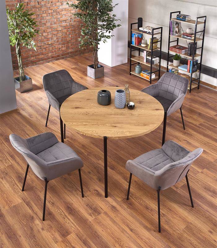 Stół okrągły industrialny dąb złoty z czarnymi nogami MORGAN.