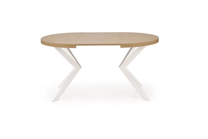 Stół okrągły loftowy PERONI oferuje Państwu wiele możliwości ustawienia – można go ustawić w mniejszej przestrzeni, a gdy będziesz potrzebował większego stołu, co zaskakujące łatwo można go rozłożyć aż do imponujących 250 cm. Blat stołu jest wykonany z pięknej okleiny dębu w złotym odcieniu, dodając bez cienia wątpliwości elegancji i ciepła do całego pomieszczenia.