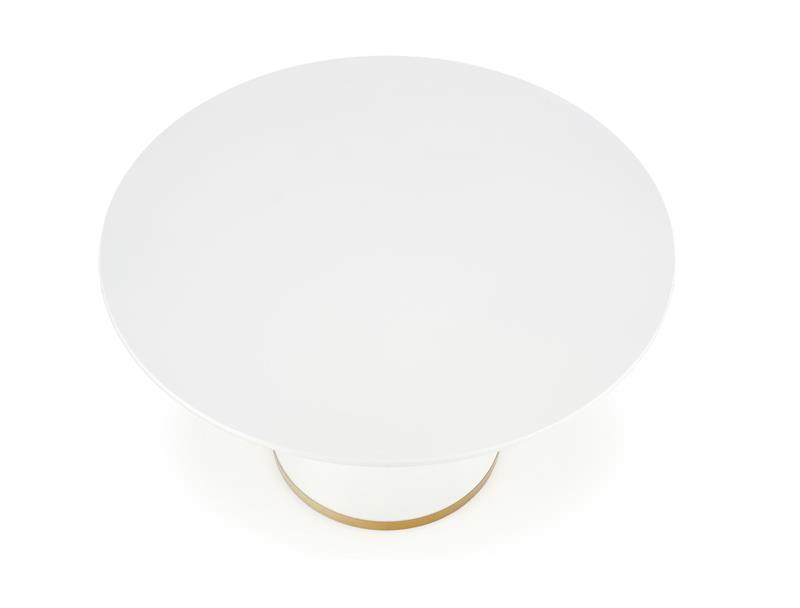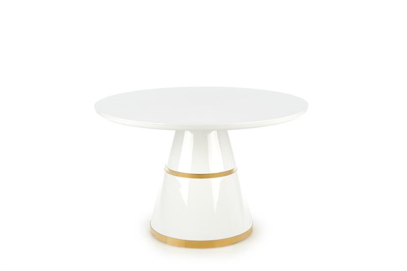 Glamour stół okrągły stożek biały połysk złoty VEGAS.
