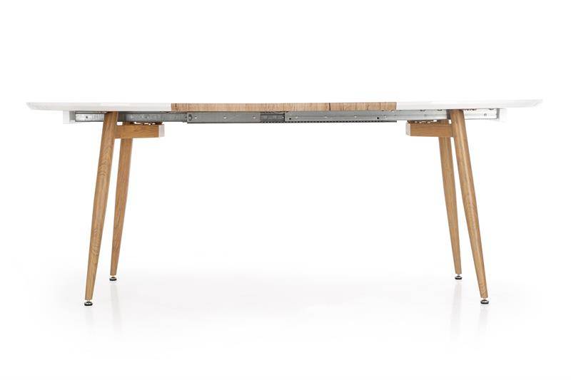 Bez cienia wątpliwości dwukolorowysStół owalny rozkładany 200 cm to nieco ciekawsza forma mebla, która daje nam więcej możliwości w aranżacji salonu, czy też jadalni. Zwróćcie Państwo uwagę, że CALIBER to skandynawski stół, ponieważ jego lekka forma, biel i kolor drewna idealnie wpasują się w salon w stylu skandynawskim.