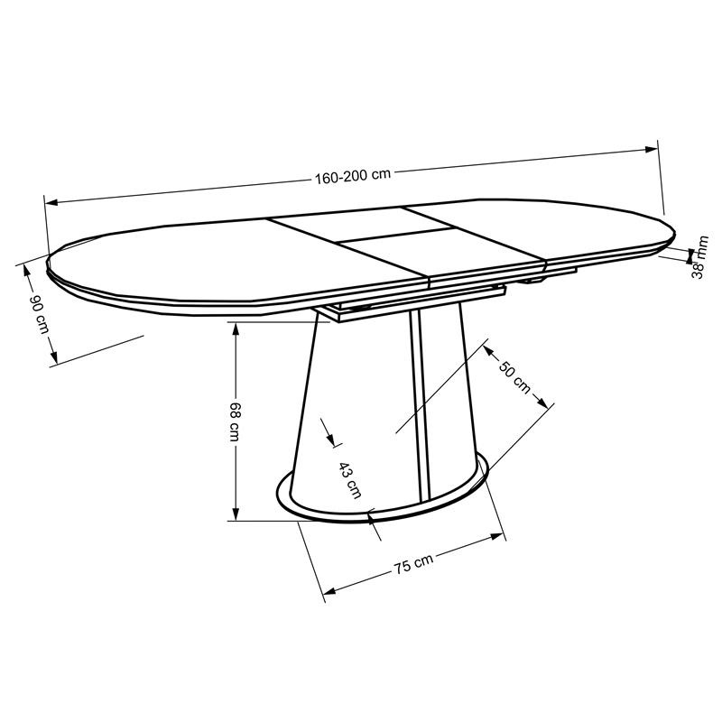 - materiał: blat wykonany z płyty ceramicznej, noga wykonana ze stali,