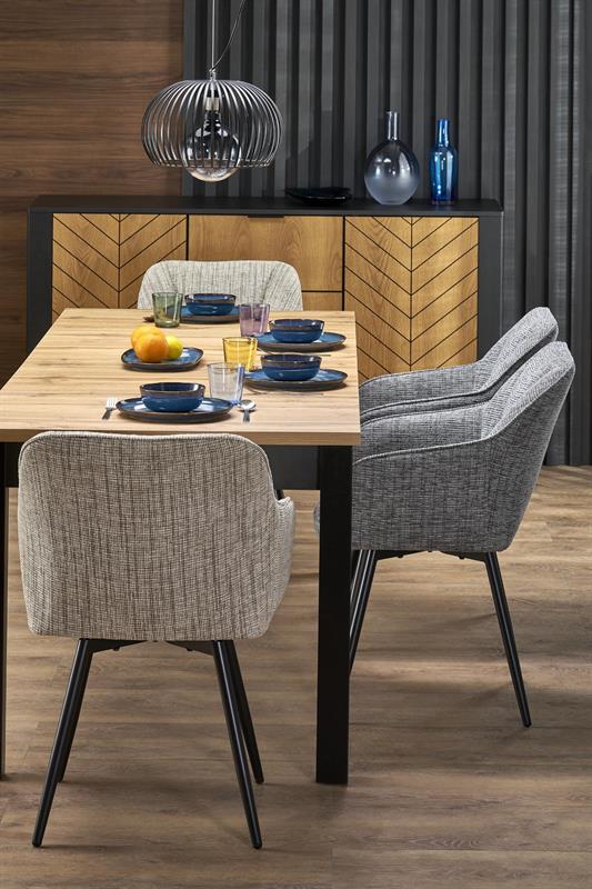 Blat w kolorze dąb artisan dodaje ciepła i naturalnego uroku, podczas gdy czarne, proste nogi nadają całości wyrazistego loftowego charakteru. Wykonanie z laminowanej płyty meblowej zapewnia odporność na uszkodzenia mechaniczne, zarysowania i wysoką temperaturę, co czyni QUBIK meblem trwałym i wygodnym w codziennym użytkowaniu.
