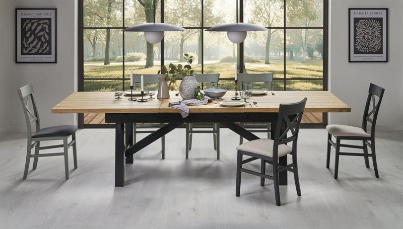Dzięki połączeniu naturalnego dębu z czarnym stelażem, model FIESTA pasuje do wielu stylów wnętrz – od skandynawskiego, przez boho i loft, aż po minimalistyczny nowoczesny.