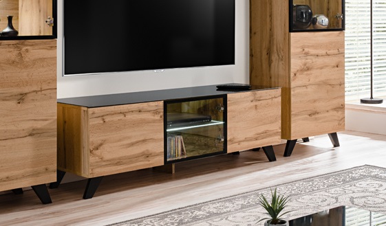 Idealne rozwiązanie dla osób poszukujących modnych mebli do salonu – atolik telewizyjny skandynawski . Elementy z tego zestawu inspirowane są bowiem najnowszymi trendami w aranżacji wnętrz. Ich prosty, minimalistyczny kształt przeplata się tutaj z wyjątkowymi detalami – lakierowanymi, szklanymi ramkami, efektownym oświetleniem LED, co dostosuje klimat wnętrza do Twoich potrzeb. Połączenie naturalnego usłojenia drewna z czarnymi szklanymi ramkami tworzy zgrany, harmonijny duet w każdym salonie.
