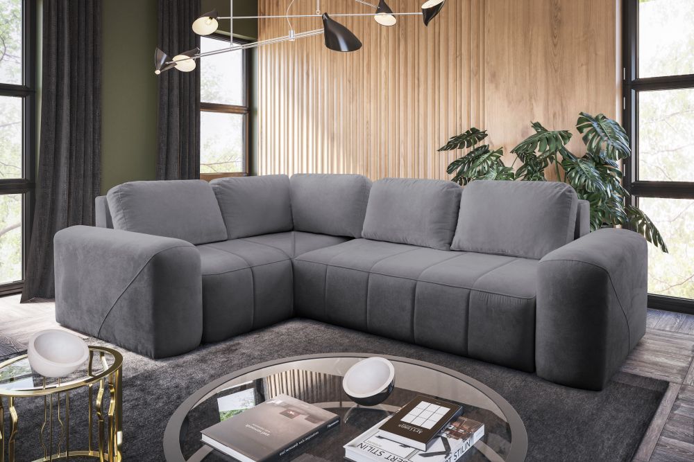To mebel w pełni wolnostojący, obity tkaniną również z tyłu, co daje swobodę ustawienia go w dowolnym miejscu w salonie. Nowoczesny i elegancki design, ogromna powierzchnia odpoczynku i niezawodna konstrukcja sprawiają, że ten superwygodny narożnik stanie się sercem Twojego domowego relaksu.