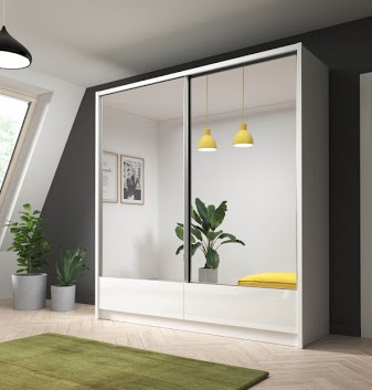 Niech szafa z drzwiami przesuwnymi 200 cm z dwoma wielkimi lustrami i szerokimi szufladami stanie się nie tylko praktycznym rozwiązaniem przechowywania, ale także ozdobą Twojego wnę