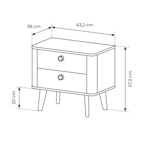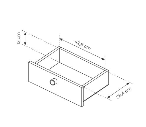 Szafka została wykonana z wytrzymałej płyty laminowanej E05 o grubości 16 mm, z dodatkiem eleganckiej, zaoblonej listwy MDF. Jej wnętrze wykończone jest białym HDF-em, a szuflady poruszają się płynnie na kulkowych prowadnicach z pełnym wysuwem – tak, by codzienne użytkowanie było równie przyjemne jak jej wygląd.