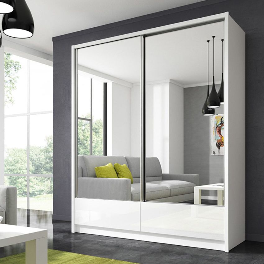 Szafy przesuwne 180 z dwoma lustrami białe połysk PAX 180. SZAFA prostolinijna, minimalistyczna szafa do niewielkich pomieszczeń. Swoją prostotą nada każdej przestrzeni ciekawego charakteru, lustro dodatkowo rozświetli przestrzeń i doda urokliwego klimatu każdemu wnętrzu.