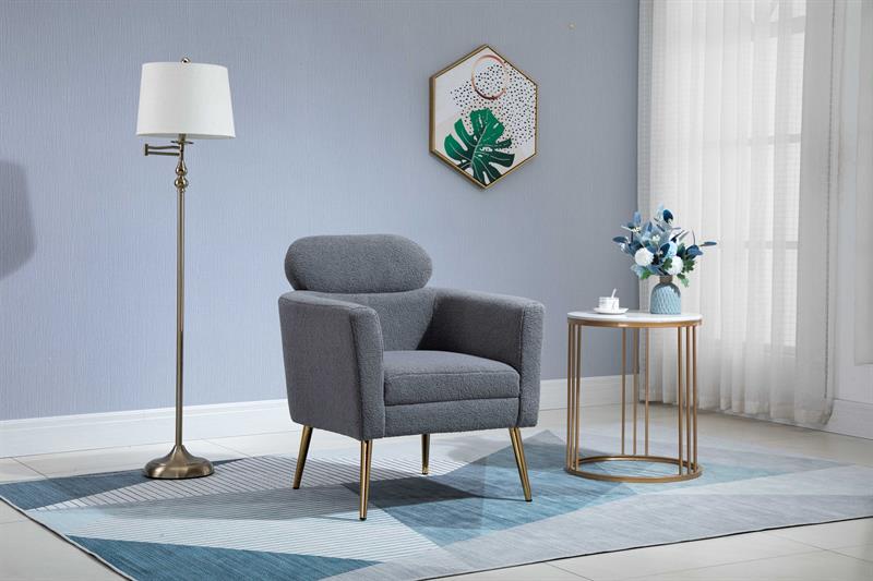 Szary fotel baranek na złotych nogach MELISKA.