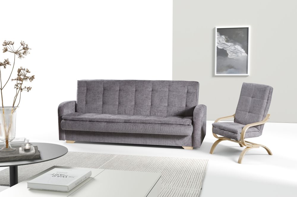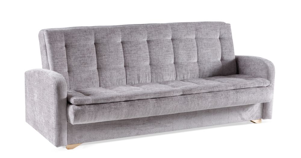 Praktyczny pojemnik na pościel pozwala zachować porządek i maksymalnie wykorzystać przestrzeń, a sprawdzony system rozkładania „klick-klack” sprawia, że zmiana wersalki w łóżko jest szybka i bezproblemowa. Boczne podłokietniki dodają całości elegancji i podnoszą komfort użytkowania.