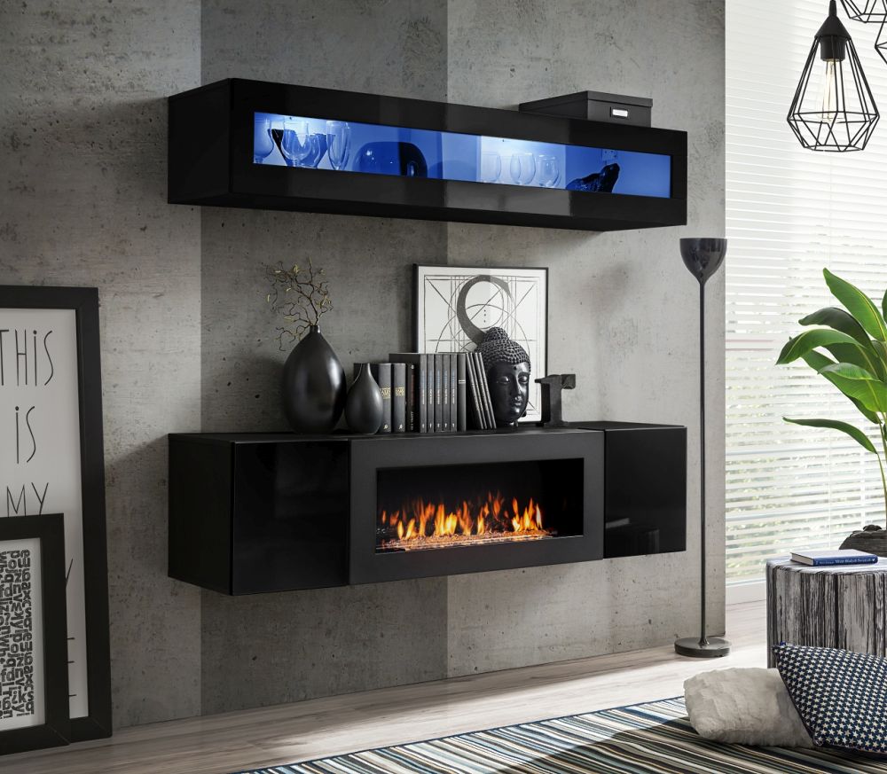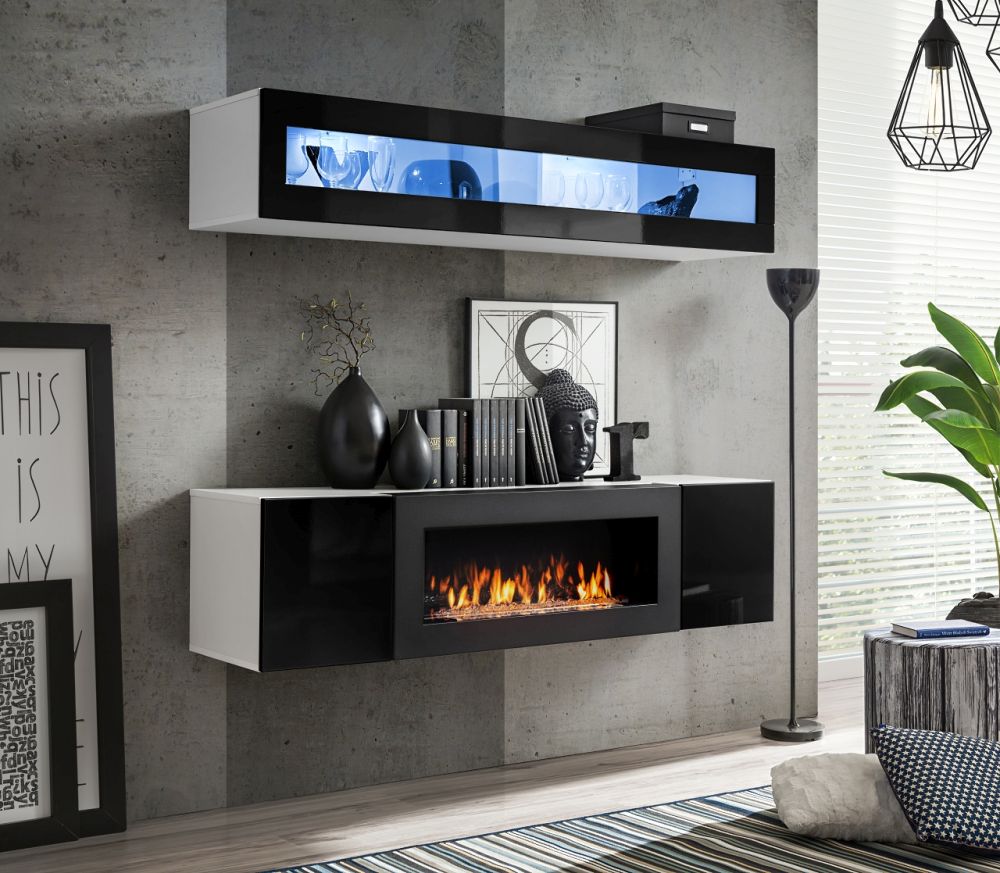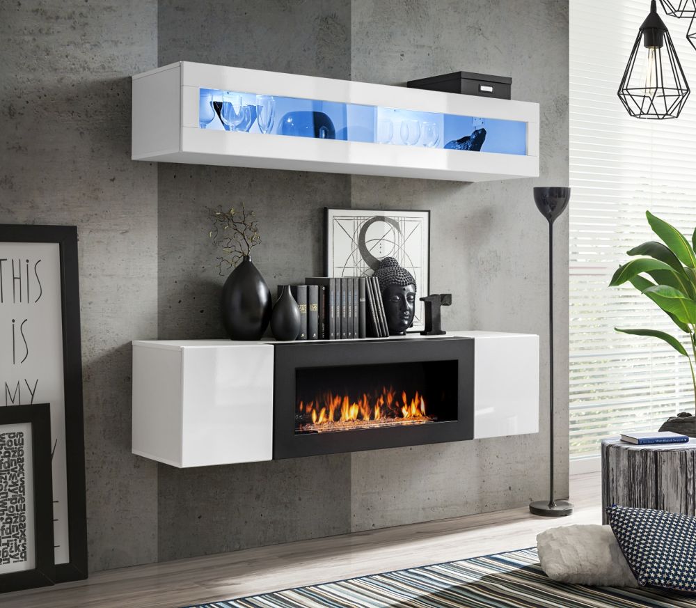 Wisząca komoda z kominkiem różne kolory połysk SKY N2