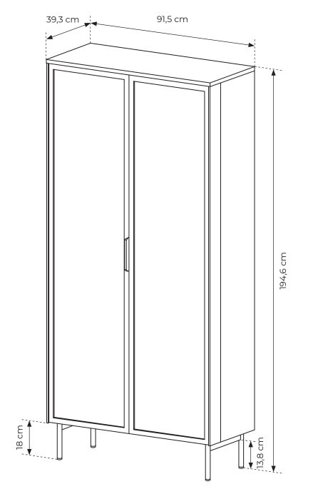 - szer 91,5/wys 194,6/gł 39,3 cm.