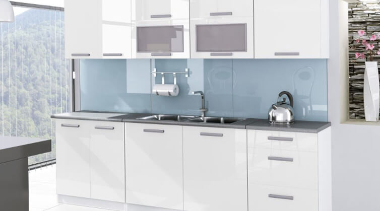 Nowoczesne wzornictwo idealnie wpasuje się we współczesne wnętrze. To propozycja dla tych, którzy cenią sobie minimalizm i prostotę wykończeń. Wszystkie górne szafki są otwierane do góry, dzięki czemu zyskujemy komfort użytkowania. Dodatkowo wmontowane szkło jest charakterystycznym akcentem i swoistym wyróżnikiem – może tym samym znakomicie skomponować się z innymi dodatkami w kuchni.